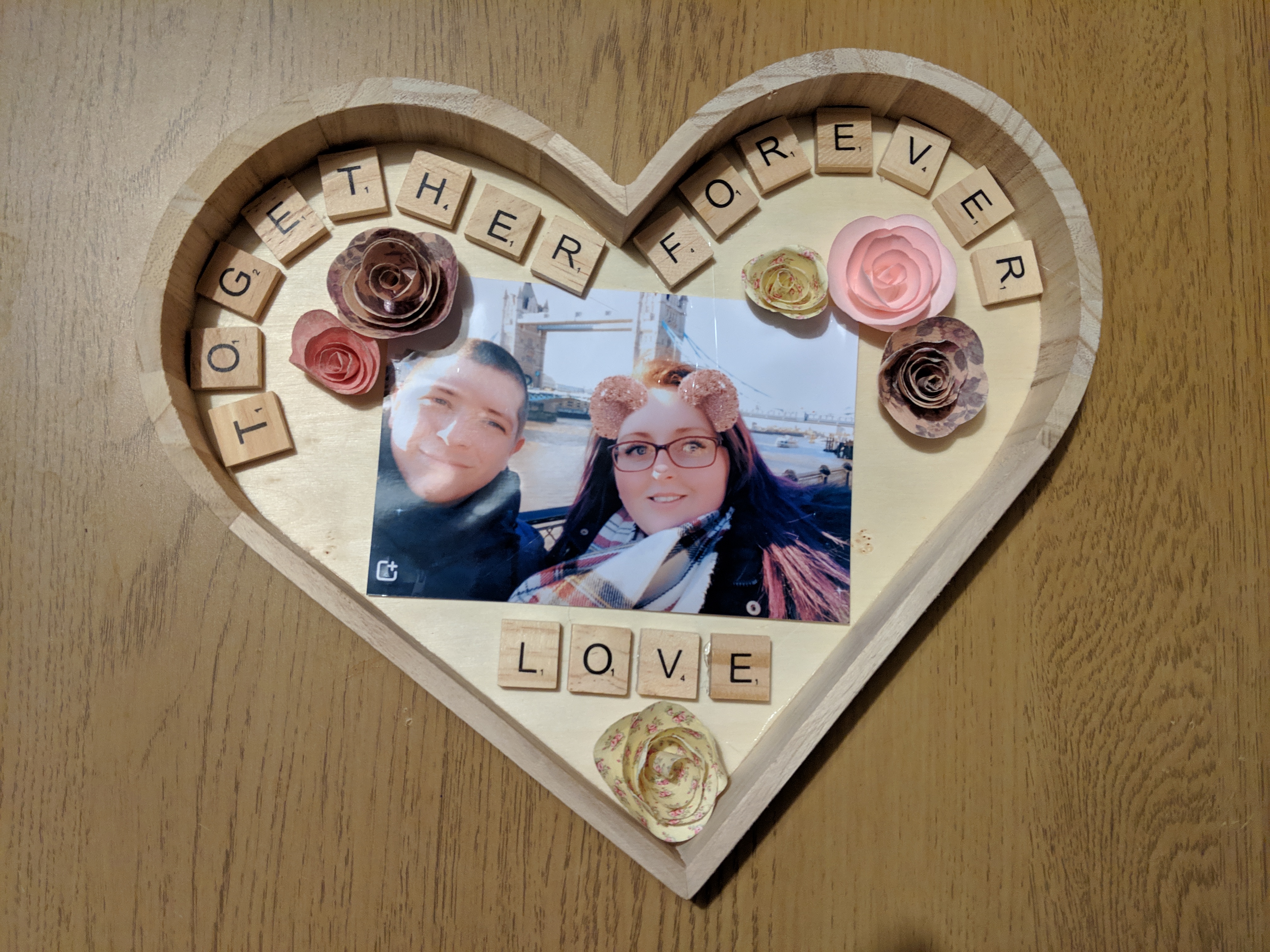 Perfect gift for loved ones and partners. Photos can be made to be interchangeable however with permanant photo further decoration can be added such as the flowers seen in this example.